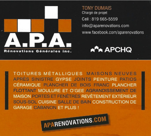 • A.P.A. RÉNOVATIONS GÉNÉRALES INC.
